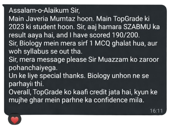 Learn from MDCAT toppers who know exactly how to crack the exam. Get expert tips, strategies, and motivation to achieve your top score with insider knowledge.